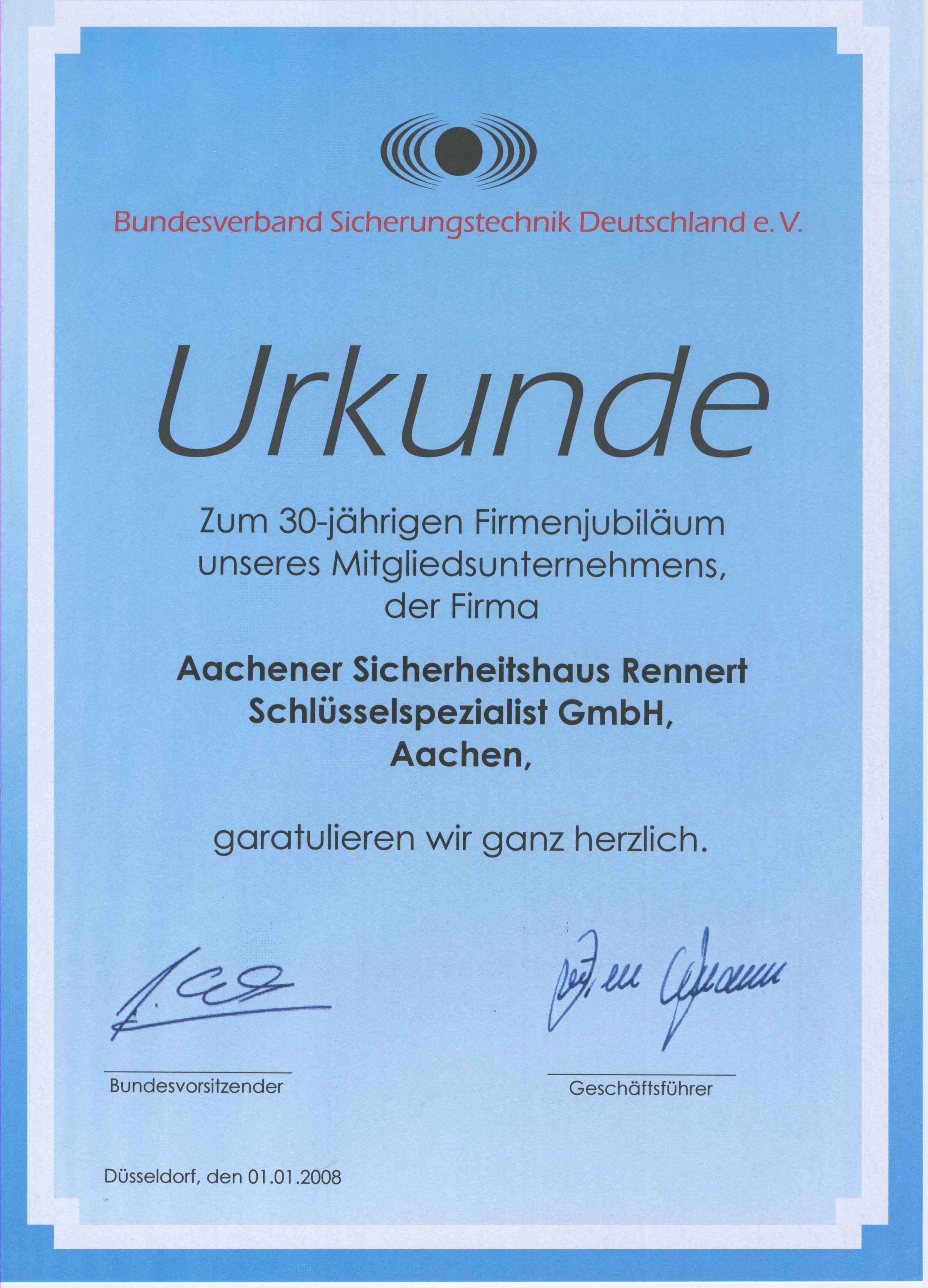 30 Jahre Mitglied im Bundesverband Sicherungstechnik